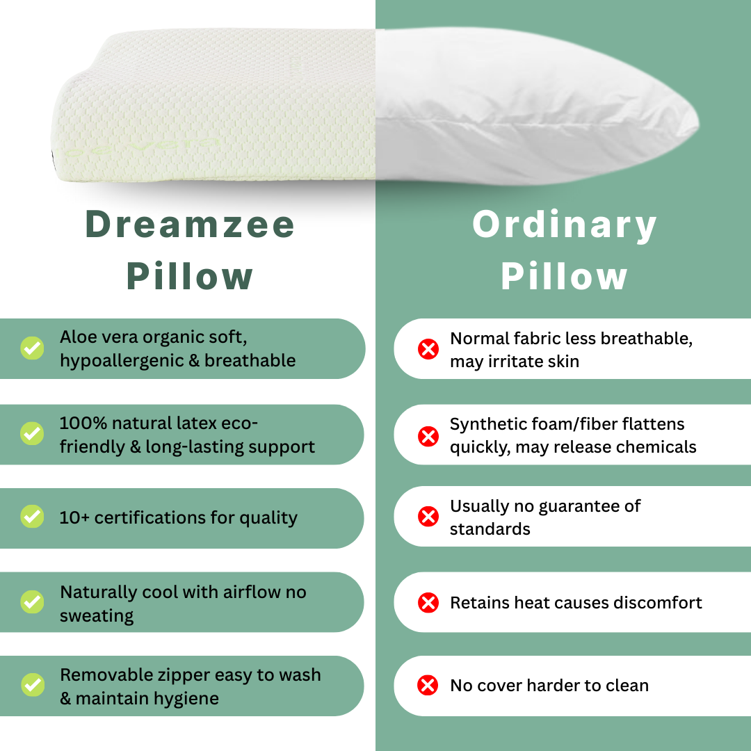 Aloe-vera fabric in this latex pillow offers a soothing, natural touch that enhances comfort. Infused with aloe vera, it provides antibacterial, moisturizing benefits, and gentle softness, making it ideal for restful, skin-friendly sleep.