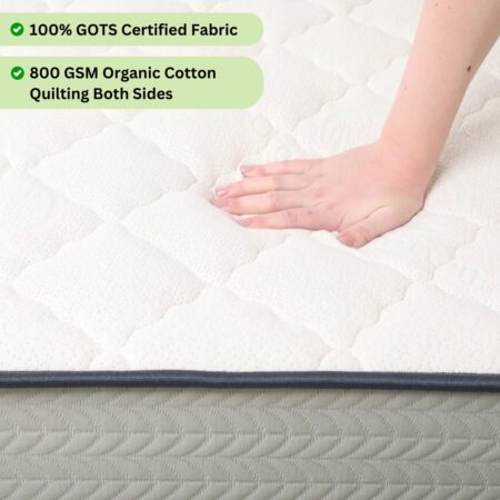 The 100% organic cotton layer used in our mattress has smooth feel . It has a cool surface that perfectly complements natural latex . When designing this mattress, we insisted on using only organic cotton as it is anti-allergic and good for skin. It is flexible and strong which makes it more durable.