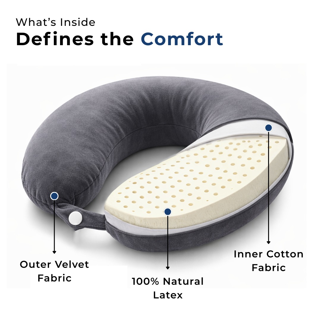 This Latex Travel Neck Pillow for neck pain helped me a lot during a long bus journey. Earlier I used to wake up with neck stiffness, but after using this 100% Natural Latex Travel Neck Pillow, my neck stayed comfortable. The aloe vera fabric also feels very gentle on the skin.